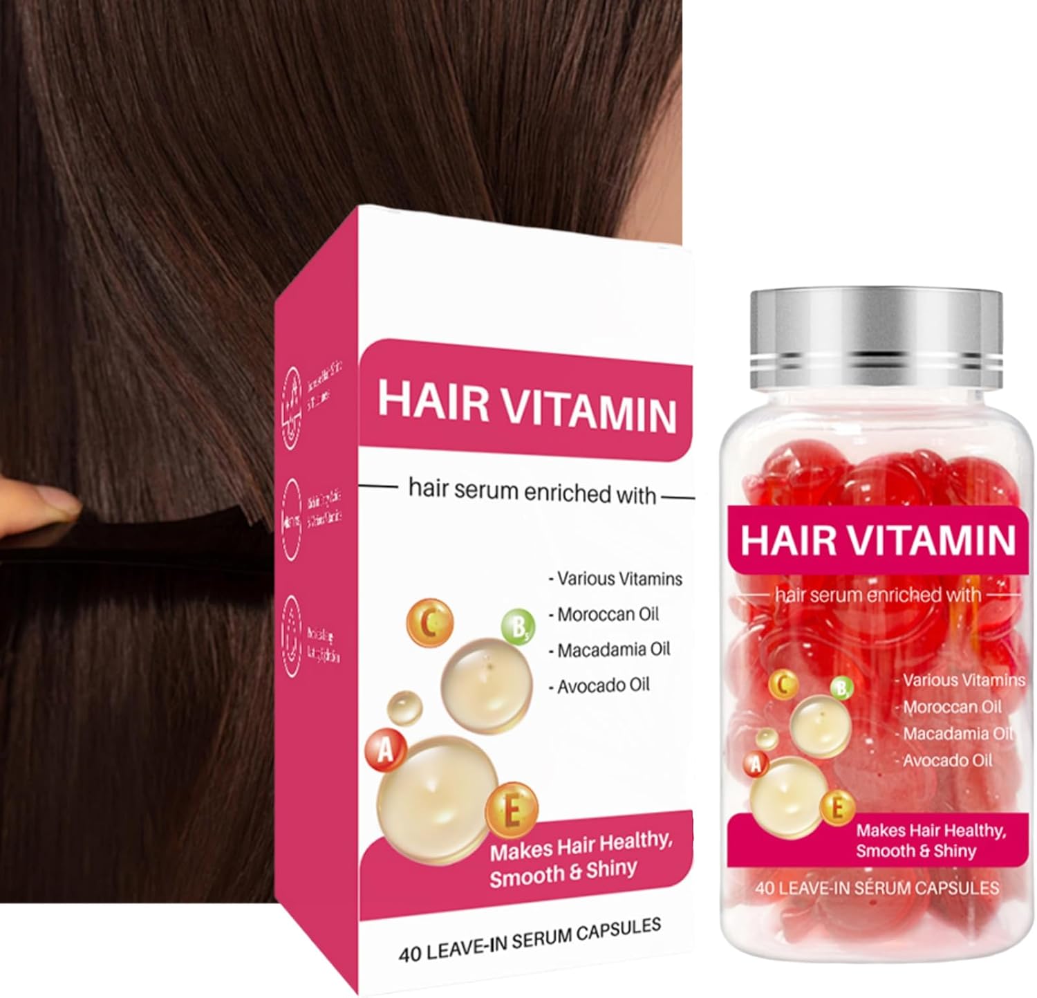 Hair Treatment Serum Capsule, Capsules for Hair Care, Hair Vitamin Serum Capsule, with Macadamia vegetable Oils, Vitamins, Hair Treatment Oil for All Hair Types, Deep Care Repair Damaged Hair